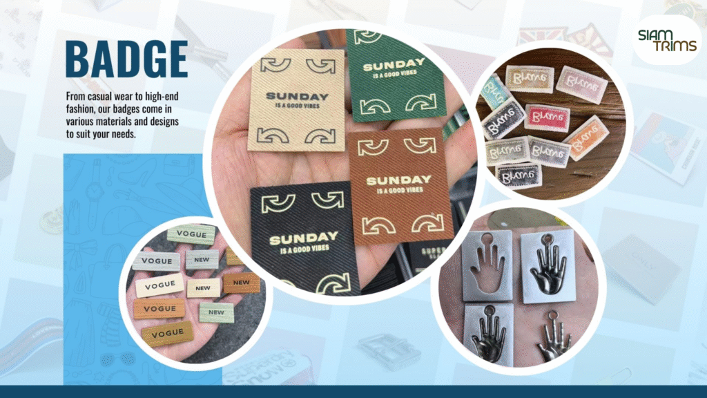 Available in a variety of colors and designs, cotton badges offer a natural look that complements both modern and vintage-style garments. Their sustainable nature makes them a preferred choice for designers looking to minimize their environmental impact.