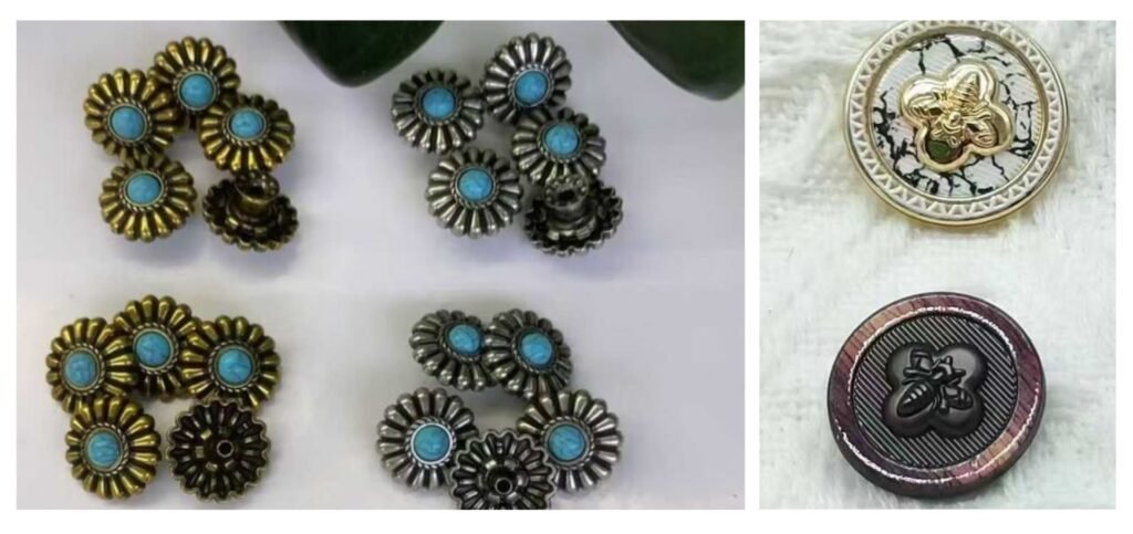 Plastic Buttons are a versatile and cost-effective option, perfect for a wide range of garments from casual wear to children’s clothing. Available in a variety of colors, shapes, and sizes, plastic buttons offer endless design possibilities. Their lightweight nature makes them ideal for garments where comfort and practicality are essential. Plastic buttons can be matte, glossy, or textured, providing flexibility in design. They are easy to produce in large quantities, making them an excellent choice for mass-produced fashion lines where affordability and style are equally important.