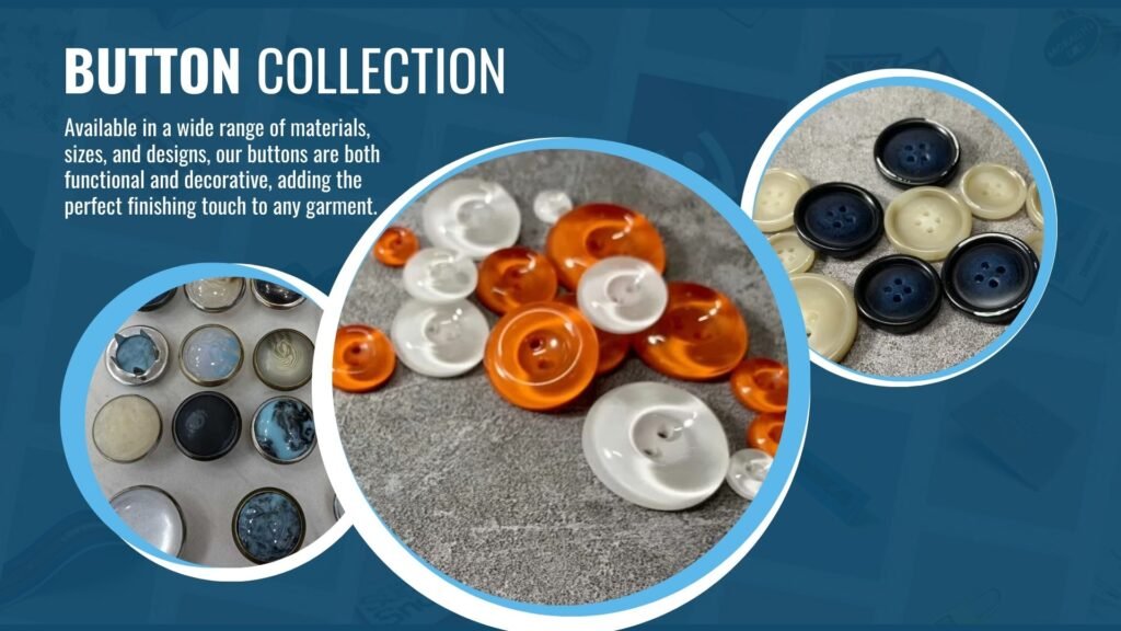 Our range of Buttons at MMTrims is designed to cater to various fashion needs, from casual wear to high-end couture. Available in a wide range of materials, sizes, and designs, our buttons are both functional and decorative, adding the perfect finishing touch to any garment.