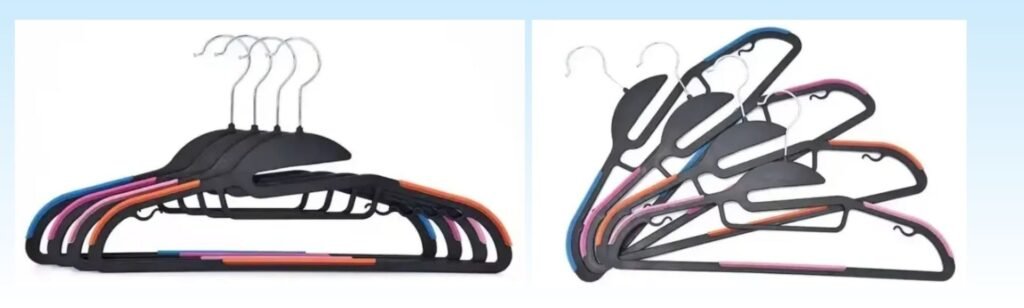 Nylon Hangers are known for their strength, flexibility, and lightweight nature. These hangers are perfect for delicate garments such as lingerie, blouses, and lightweight dresses. Nylon hangers are often coated with a soft material to prevent slipping and ensure that garments remain in place. Their sleek design makes them a popular choice for both retail and personal use, offering a modern and minimalistic aesthetic. Nylon hangers are also highly durable, resistant to wear and tear, and easy to clean, making them a long-lasting and practical option for garment displays.